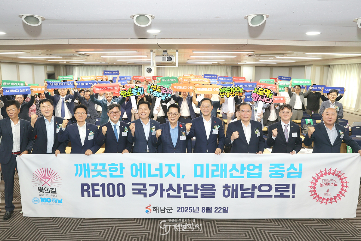 해남 솔라시도 기업도시에 정부 국정과제인 RE100 산업단지를 조성하기 위한 발걸음이 빨라지고 있다. 해남군은 22일 서울 중소기업중앙회 대회의실에서‘솔라시도 AI 에너지 신도시 및 RE100 산업단지 조성 정책포럼’을 성황리에 개최했다.