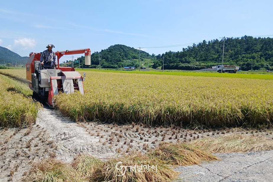 도초도 궁항리 최중완 씨는 조생종 벼 1ha를 수확했다. 도초도는 전체 약 800ha의 면적에서 연간 4,800여 톤의 쌀을 생산하고 있다. 이 중 약 7%가 조생종 벼로 일반 벼보다 한 달 빠른 8월 말에 수확한다.