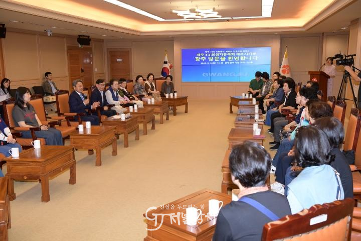 이날 환담에는 강기정 시장, 제주4·3희생자유족회 김대욱 제주시지부장과 김효자 부녀회장 등 회원 30여명이 참석했다.