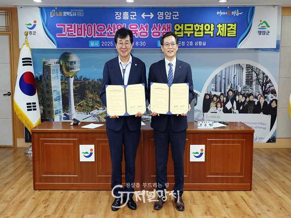 장흥군과 영암군이 그린바이오 천연물 산업 육성을 위한 상생 업무협약을 체결했다.