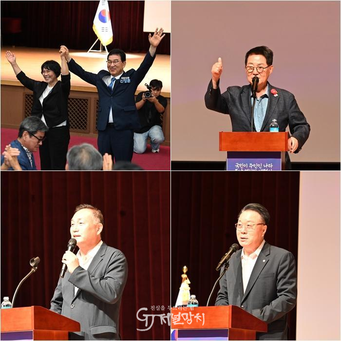 행사는 식전 공연 및 앙상블 연주, 당원 영상 시청, 지방의원 단체 합창, 결의문 낭독, 구호 삼창 순으로 진행됐다.