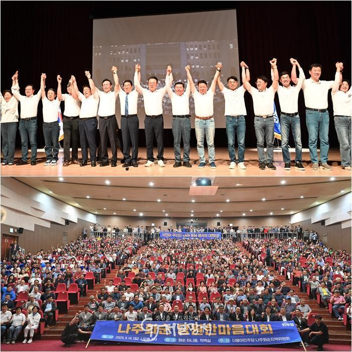 이날 행사에는 신정훈 더불어민주당 나주·화순지역위원장, 서삼석 더불어민주당 최고위원(무안·영암·신안), 박지원 국회의원(해남·완도·진도), 김원이 국회의원(목포시), 구복규 화순군수, 오형열 화순군의회 의장, 류기준·임지락·최명수·이재태 전남도의원, 하성동·정연지·조명순·조세현 화순군의원, 윤병태 나주시장, 이재남 나주시의회 의장, 윤영민 지역경제연구소장 등 지역 기관·사회단체장, 당원, 시민 등이 참석했다.