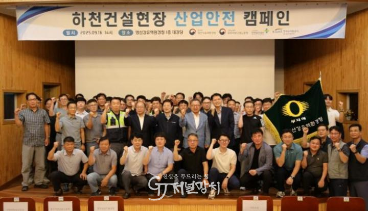 캠페인에 앞서 영산강유역환경청장은 광주지방노동청, 수자원공사, 산업안전보건공단 등 유관기관 관계자들과 모여 하천건설현장 안전관리 현황을 공유하고, 산재 예방을 위한 협력방안을 논의했다.