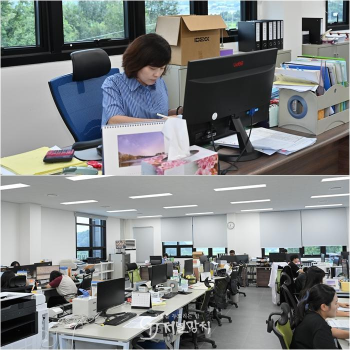 ![]() (위)이정원 바른환경연구소 대표가 업무에 몰두하고 있는 모습. (아래)업무 중인 이정원 대표와 바른환경연구소 직원들. |