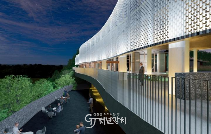 영산강을 바라보는 박물관 외벽에 설치된 3만 3천여 장의 ‘흔들리는 알루미늄 패널’은 바람이 불 때마다 흔들리는 모습이 나라가 위기에 처했을 때 분연히 일어섰던 남도의병의 넋과 희생정신을 상징한다.