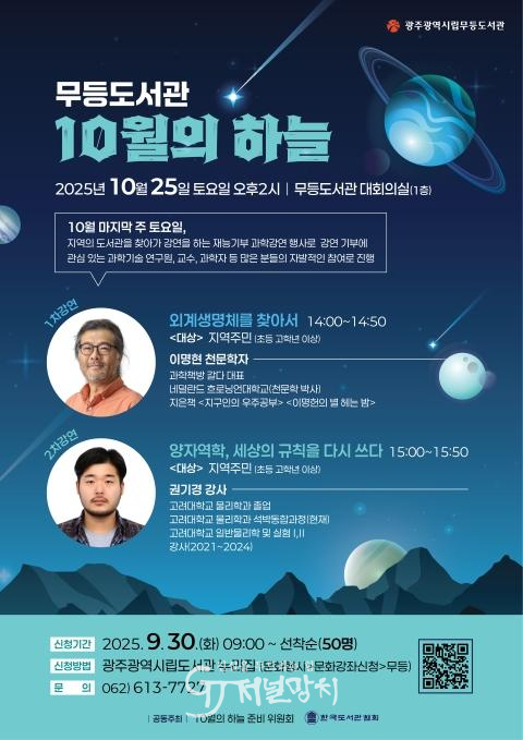 송경희 시립도서관장은 “이번 10월의 하늘 과학 강연을 통해 도서관이 새로운 배움과 영감을 전하는 장이 될 것”이라며 “앞으로도 다양한 프로그램을 이어가겠다.”고 했다.