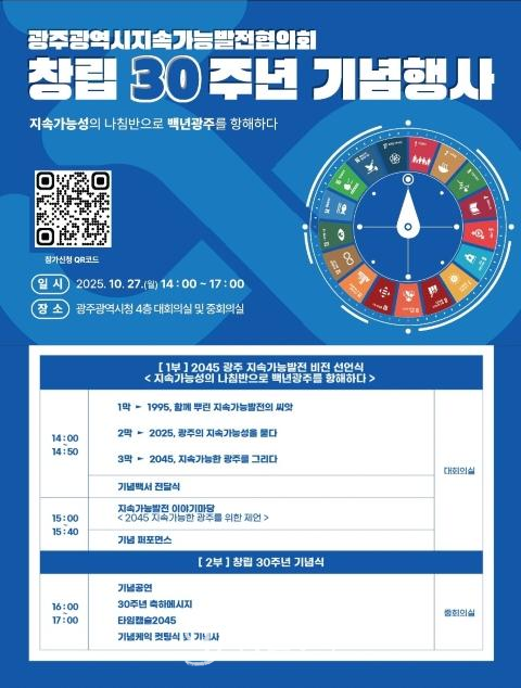정현윤 기후환경국장은 “광주지속가능발전협의회 30주년 기념행사는 광주시가 지속가능한 미래를 향한 의지를 다지는 중요한 자리”라며 “많은 시민들이 관심을 갖고 적극 참여해 주길 바란다.”고 말했다.