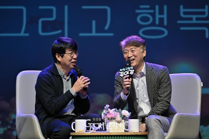 이어진 2부는 김이강 서구청장이 직접 ‘함께 살아가는 힘, 배려 그리고 행복’이라는 주제의 토크 콘서트를 열었다. 김 청장은 “일자리 교육이 근로 역량을 높이는 자리를 넘어, 세대 간 연대와 배려의 가치를 배우는 시간이어야 한다.”며 “국가 발전을 이끌어온 어르신 세대가 이제는 일의 보람 속에서 행복을 되찾고, 함께 살아가는 행복한 공동체를 만들어가야 할 때”라고 강조했다. 이날 김 청장은 김혜일 행복협력관과 기타와 피아노 연주를 함께 선보이며 따뜻한 분위기를 더했다.