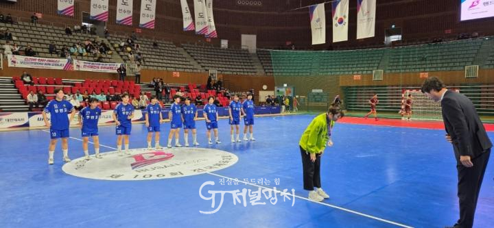 ![]() 제106회 전국체육대회에서 놀라운 팀 경기력을 보여준 무안고등학교 여자 핸드볼팀이 동메달을 수여받고 있다. |