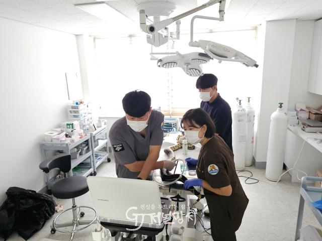 파충류는 횡격막이 없어 마취사고 위험이 높은데, 이번 수술에서는 IPPV(간헐적 양압환기 장치), 마취 환자감시장치 등 전문장비를 활용해 안전하게 마무리됐다. 수술은 성공적으로 완료됐다.