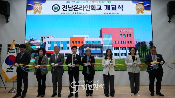 전남온라인학교 4층 미디어홀에서 진행된 개교식에는 김대중 전남교육감이 참석해 문은희 교장에게 교기를 전달하고 관계자들을 격려했으며, 온라인 수업을 실시간으로 참관하고 학생들과 직접 대화를 나누며 온라인 수업의 운영 방식과 만족도에 대한 현장의 목소리를 들었다. 이외에도 전남도의회 교육위원장을 비롯한 교육지원청, 지역 학교 관계자 등이 참석했으며, 개교식을 온라인으로 생중계해 다양한 교육 주체들과 함께하는 의미 있는 자리가 됐다.