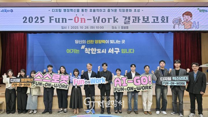 김이강 서구청장은 “펀온워크 직원들이 일상의 불편을 기술로 해결하며 행정혁신을 주도한 과정 자체가 매우 값진 성과”라며 “AI 기반 행정혁신을 서구의 핵심 경쟁력으로 삼아 ‘데이터로 일하는 행정, 스마트하게 일하는 서구’를 실현하겠다.”고 말했다.