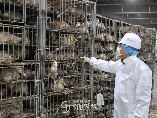 특히 지난 22일 광주 기러기 농장에서 고병원성 조류인플루엔자가 발생함에 따라 도축장을 통해 바이러스가 확산하는 것을 방지하기 위해 선제적 방역조치에 나섰다. 도축장과 도축 출하농가에 대한 조류인플루엔자 검사, 도축장 출하 닭·오리에 대한 생체와 해체검사를 강화하고 적절한 소독약품 사용 여부를 매일 점검하는 등 도축장 내외부 방역을 철저히 관리하고 있다.