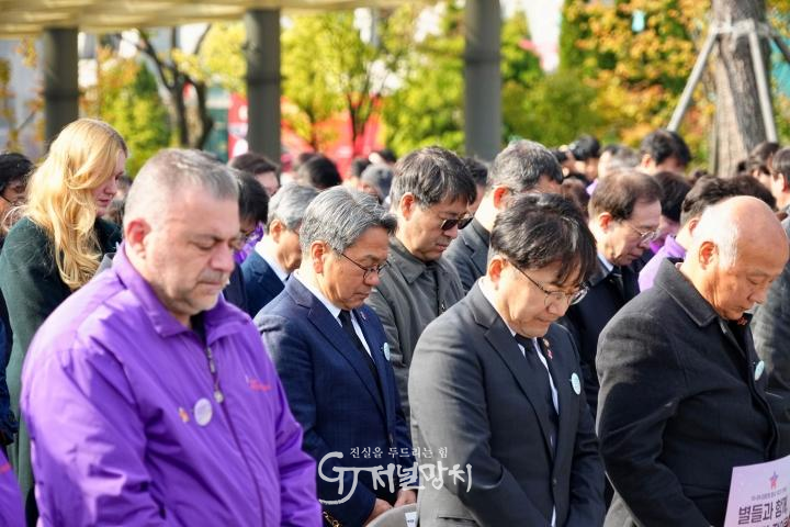 이날 기억식은 오전 10시 29분 서울 전역에서 추모 묵념을 시작으로 추모영상, 추모사, 추모공연, 공동선언문 낭독 등이 이어져 희생자를 기리고 재발 방지를 다짐하는 시간으로 진행됐다.
