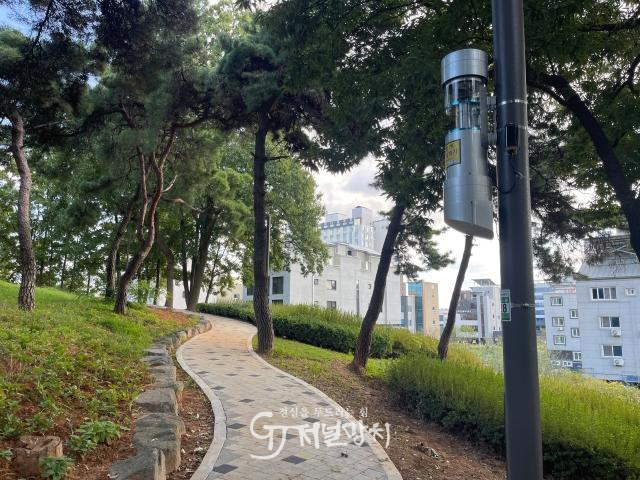 ![]() 광산구가 주민들이 자주 이용하는 공원, 산채골 등 해충유인퇴치기인 포충기와 기피제분사기를 추가 설치했다. /광주 광산구 제공 |