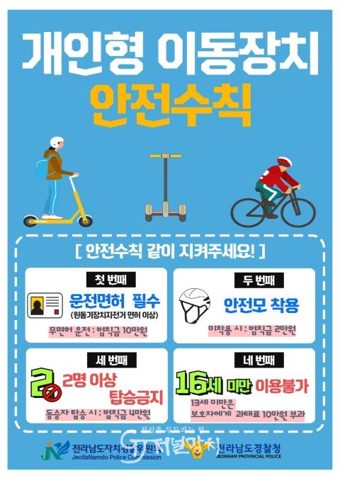 경찰청 통계에 따르면 전국 무면허 개인형 이동장치 운전 적발 건수는 2021년 7천164건에서 2024년 3만 5천382건으로 5배 이상 급증했다. 전남에서도 무면허 운전이 관련 사고의 주요 원인으로 지목되고 있다. 실제로 지난 2024년 한 해 53건의 사고로 1명이 숨지고 63명이 부상했다.