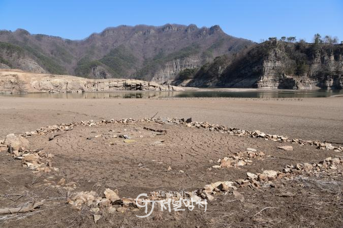![]() 가뭄에 모습을 드러낸 노루목마을 터와 적벽, 2023, 박철수 |