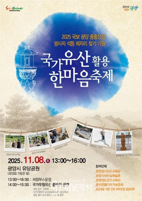 이번 행사는 광양시 고향사랑기부제 제1호 기금사업인 ‘국보 광양 중흥산성 쌍사자 석등 제자리 찾기 사업’과 광양시가 추진 중인 다양한 국가유산 활용사업을 널리 홍보하기 위해 마련됐다.