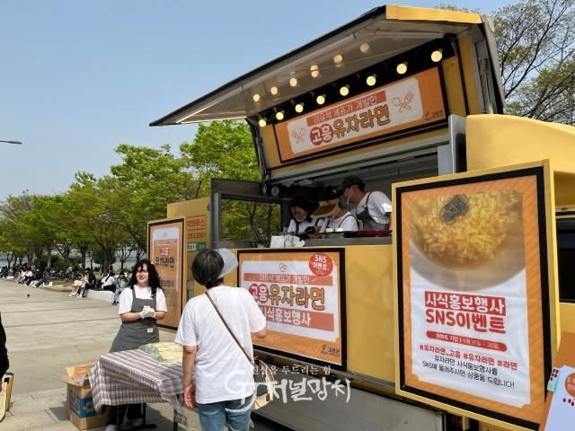 ![]() 지난 4월 서울에서 진행한 유자라면 시식행사 /고흥군 제공 |