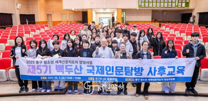 올해는 관내 6개 중학교에서 학교별로 선정된 48명의 학생과 인솔 교사 등 총 66명이 사업에 함께했으며 중국 연길과 하얼빈 등 항일 유적지를 포함한 ‘백두산 국제인문탐방’을 지난 8월 26일부터 30일까지 4박 5일간 다녀왔다.