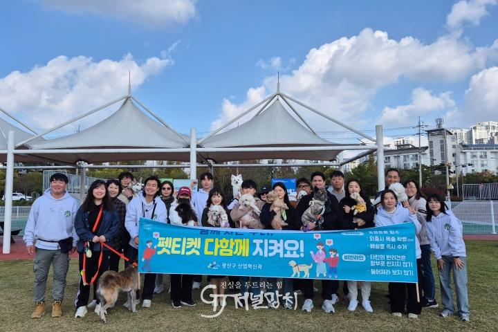 ![]() 광산구가 지난 1일 황룡친수공원에서 ‘펫티켓 캠페인’을 진행했다. /광산구 제공 |