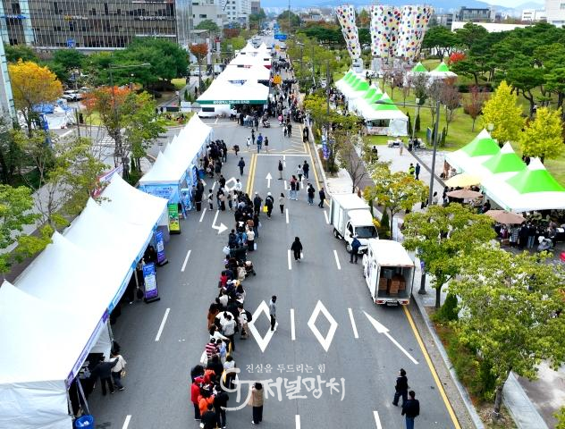 올해 축제는 ‘우주최광(光) 김치파티’를 주제로 열렸으며, 시청 앞 도로를 ‘차 없는 거리’로 조성해 김치마켓과 농산물마켓을 전면에 배치하는 등 방문객 동선을 효율적으로 구성했다. 이에 방문객과 입점업체 모두 높은 만족도를 보였다.