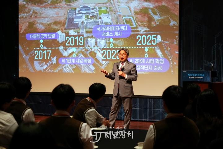 강기정 시장은 기조연설에서 “국산 AI반도체, NPU산업 생태계 조성과 대한민국 AI 3강 도약을 위해서는 국가 NPU 전용 컴퓨팅센터 설립이 필요하다.”며 “기업이 국산 AI반도체 양산체계를 완성할 수 있도록 기업 지원을 강화하고, 대학과 연구기관들이 AI반도체 전문인력을 빠르게 양성할 수 있는 체계도 함께 구축해야 한다.”고 강조했다.