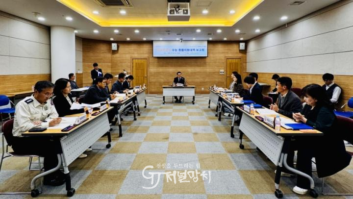 이번 보고회는 편안하고 안전한 시험환경을 조성하기 위해 열렸으며, ▲교통 소통 원활화 ▲119 구급 대응 ▲시험장 주변 소음 방지 ▲자연재해 대비 ▲안전사고 예방 등 5개 분야에 대한 지원 대책이 논의됐다.