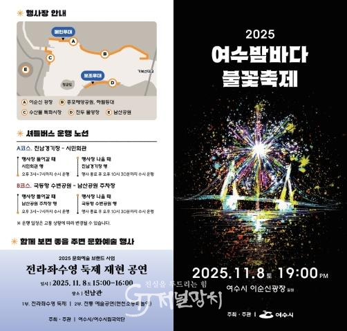 한편 올해 10주년을 맞는 ‘2025 여수밤바다 불꽃축제’는 오는 11월 8일 이순신광장과 장군도 앞 해상 일원에서 진행된다.