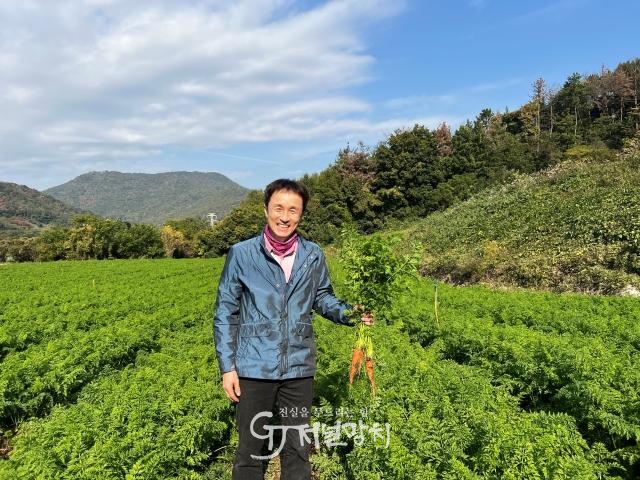 ![]() 여수 율촌면에서 10여 년째 친환경 당근을 재배하고 있는 류용현 씨. /전라남도 제공 |