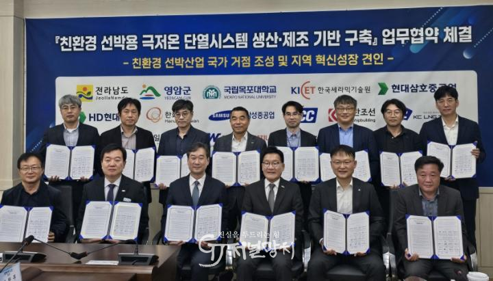 협약식에는 강위원 전남도 경제부지사, 우승희 영암군수, 송하철 목포대학교 총장, 김진율 제일테크노스 연구소장, 최대규·우명수 KCC 상무, 김흥배 대웅엔지니어링 상무, 김만태 한국세라믹기술원 단장, 조원제 TMC 상무, 심학무 HD현대삼호 전무, 오훈규 HD현대중공업 수석실장, 방창선 삼성중공업 상무, 강중규 한화오션 전무, 이상철 대한조선 본부장 등 핵심 관계자 20여 명이 참석했다.