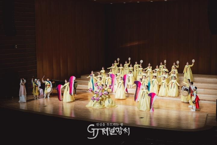 나주시립소년소녀합창단은 ‘나주 판타지아’, ‘두껍이’, ‘치키 차카 초코 츄’ 등 한국 창작 합창곡을 완성도 높게 선보였다. 나주배를 상징하는 금빛 한복을 입은 단원들은 국악기와 어우러진 한국적 연출로 무대를 감동으로 물들였다.