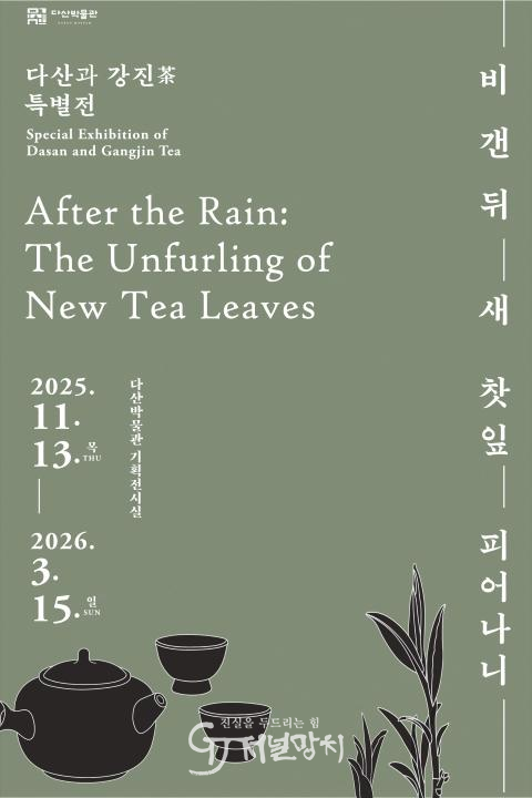 ![]() 2025년 다산박물관 특별전 ‘다산과 강진茶:비 갠 뒤 새 찻잎 피어나니’ 포스터 /강진군 제공 |