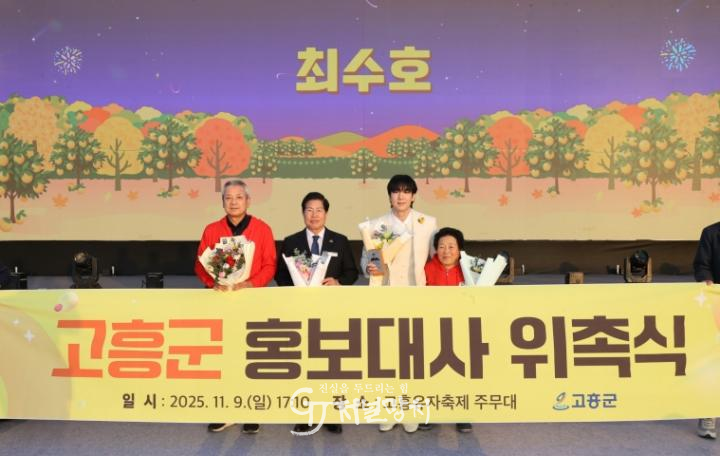 가수 최수호는 “아버지의 고향인 고흥에서 첫 번째 홍보대사를 맡게 되어 뜻깊다.”며 “트로트 가수로 왕성한 활동과 더불어 천혜의 자연환경과 우주항공 중심도시로 거듭나고 있는 고흥을 널리 알리겠다.”고 당찬 포부를 밝혔다.