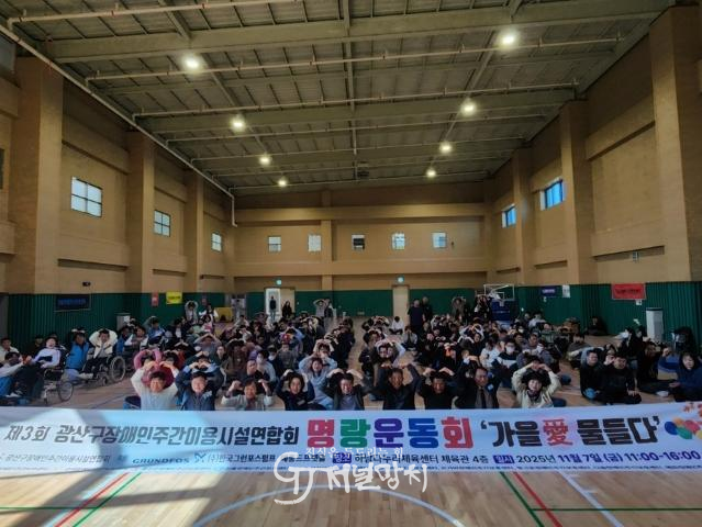하람장애인주간보호센터 등 광산구 내 주간이용시설 10개소가 연합 주최하는 행사로, 이용인, 종사자, 자원봉사자 등 250여 명이 참여한 행사는 이날 가을운동회와 오락 등 하나 되는 시간을 가졌다.