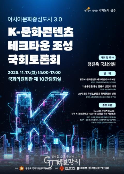이번 토론회는 정진욱 국회의원(광주 동·남 갑)이 주최하고 광주시가 주관한다. 인공지능(AI) 시대에 발맞춰 콘텐츠 산업이 나아가야 할 방향을 논의하고, 광주 K-문화콘텐츠 테크타운 조성사업의 구체적 추진 방안을 마련하기 위해 추진됐다.
