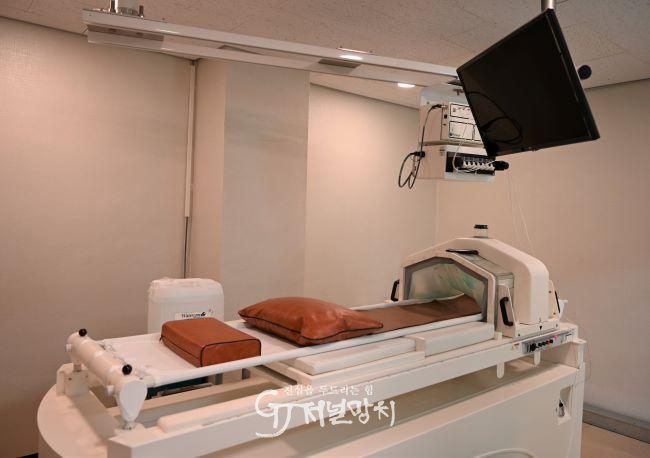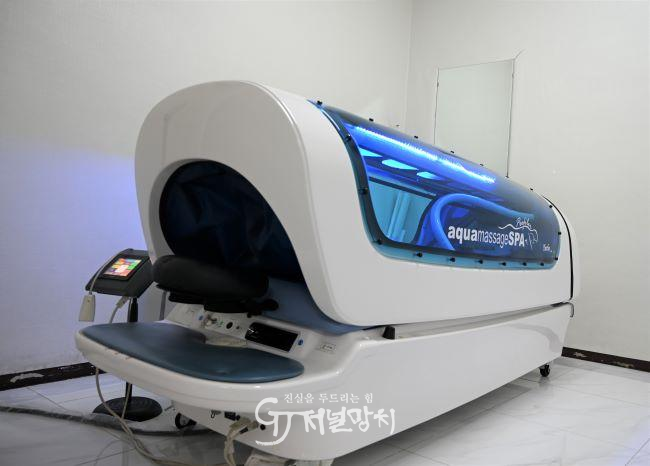 은산한방병원에서 사용 중인 치료 장비 아쿠아스파 모습. 이 장비는 통증을 감소시키는 데 도움을 주고, 혈액순환·근이완효과·림프순환·독소배출의 효과가 있다. |