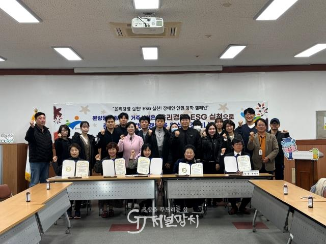유대원 본량동장은 “민관이 함께하는 윤리경영과 환경‧사회‧거버넌스(ESG) 실천은 장애인 복지의 새로운 틀을 여는 계기가 될 것”이라며 “앞으로도 지역사회와 협력해 투명하고 신뢰받는 복지행정을 이어가겠다.”고 말했다.