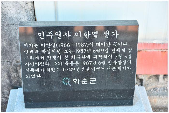 의향 화순의 맥을 이어준 이한열 열사의 생가터를 민주화 성지로 조성해 우리나라는 물론 세계인들의 발길이 닿도록 화순 군민 모두가 희망하길 바란다.
