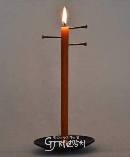 ![]() 양초와 못으로 만들어진 알람시계. /Shweta Majumdar |