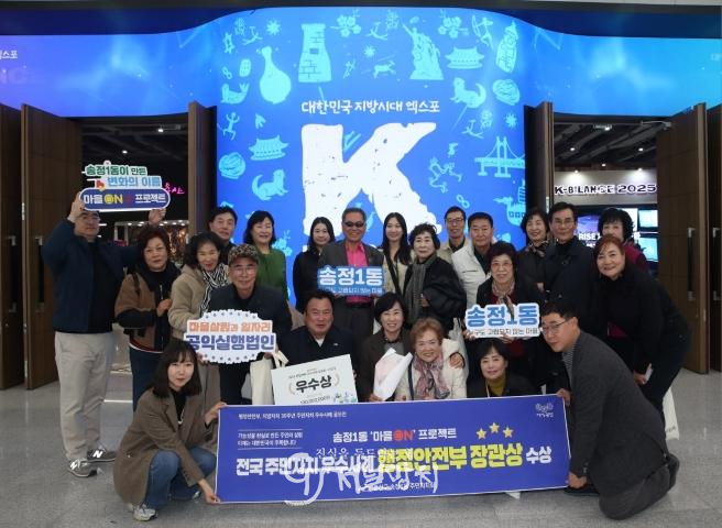 ![]() 송정1동 주민자치회가 20일에 열린 ‘지방자치 30주년 기념 주민자치 우수사례 공모전’에서 행안부장관상을 수상했다. /광주 광산구 제공 |