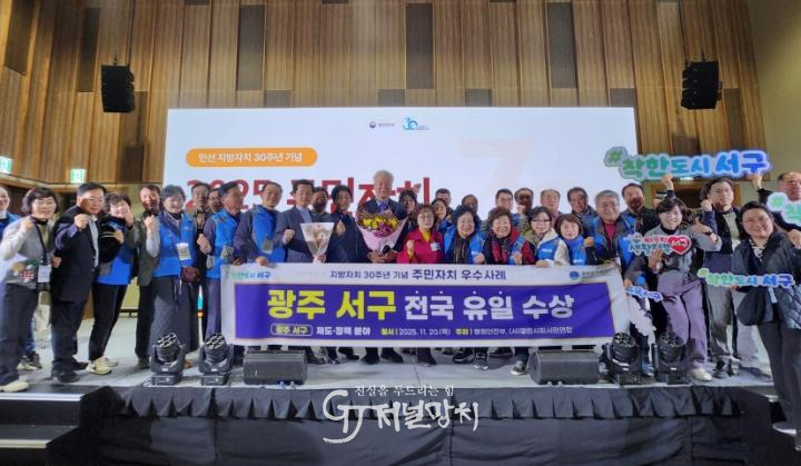 이번 공모전은 지방자치 30주년을 맞아 행정안전부와 (사)열린사회시민연합이 공동 주관한 행사로 주민자치의 우수사례를 발굴·확산하기 위해 마련됐다. 서류·인터뷰, 현장발표 심사 등 엄정한 절차를 거쳐 최종 우수사례 10건이 선정됐으며 서구는 기초자치단체 중 유일하게 두 분야에서 모두 수상하는 성과를 거뒀다.