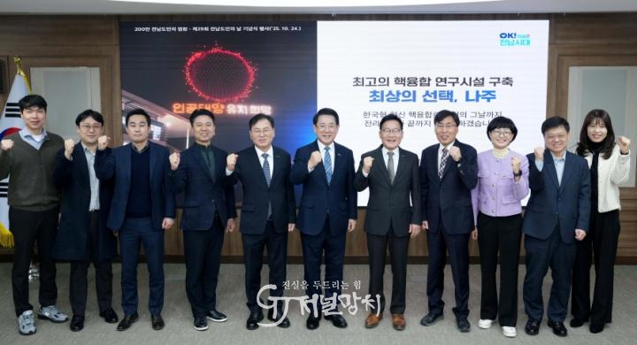 김영록 지사는 “전남이 진정한 AI·에너지 수도로 도약하기 위한 마지막 퍼즐은 핵융합”이라며 “정부가 1조 2천억 원 규모의 인공태양 연구시설을 시작으로 핵융합 분야 투자를 확대하는 만큼, 전남 나주에 유치되면 행·재정적 지원에 적극 나서겠다.”고 밝혔다.