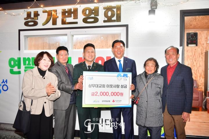 ![]() 상무대교회가 24일 200만 원을 전남사회복지공동모금회에 기부했다. /장성군 제공 |