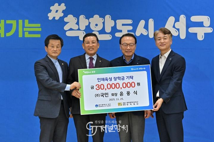 이날 수여식은 김이강 서구청장을 비롯해 장학생, 학부모 등 100여 명이 참석한 가운데 영상을 통한 활동 공유, 장학생 꿈 선언, 장학금 기탁식 등이 진행됐다. 특히 윤풍식 ㈜국민 회장은 기탁식에서 “이윤을 사회에 환원하는 것은 기업의 당연한 책무”라며 장학금 3천만원을 쾌척해 의미를 더했다.