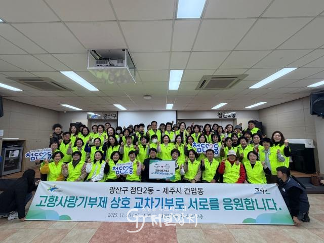![]() 첨단2동-제주시 건입동 고향사랑기부금 전달식 /광주 광산구 제공 |