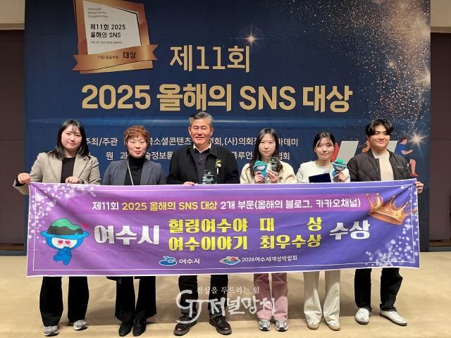 ![]() 여수시(시장 정기명)는 26일 서울 한국프레스센터 국제회의장에서 열린 ‘제11회 2025 올해의 SNS’ 시상식에서 블로그 부문 대상과 카카오채널 부문 최우수상을 수상했다. /여수시 제공 |