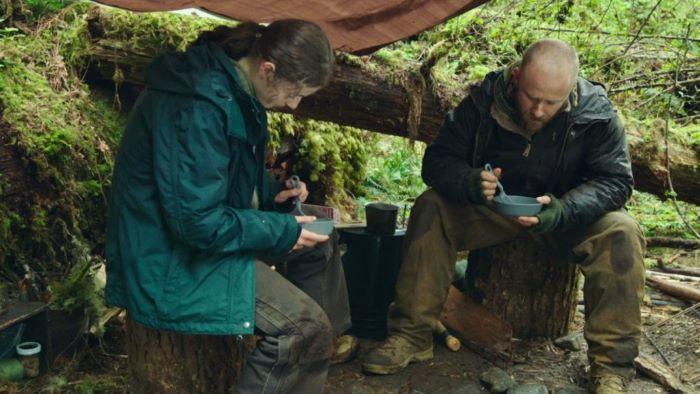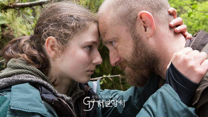이 영화의 그는 딸과 함께 깊은 숲 속에서 살지. 과연 어떨까. 되도록 복지국가로부터 멀어지려고 하는 그는 인기척을 느끼면 더욱 깊은 숲으로 들어가 버리지. 깊은 숲―안식처는 당신이 상상하는 것보다 더 단순할 거야. 하지만 중요한 것은 흔적을 남기면 안 된다는 것. 발자국, 양말, 그림자, 형체조차 누군가에게 들키면 안 되지. 그건 발각이고 죽음과 같은 감금에 빠지게 된다는 걸 의미하지.