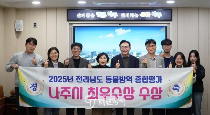28일 나주시(시장 윤병태)에 따르면 전라남도 주관 ‘2025년도 동물방역위생 시책 추진종합평가’에서 최우수상을 받았으며 대상을 받았던 지난해에 이어 올해도 주요 가축전염병 발생 ‘0건’을 기록하며 안정적인 방역체계를 이어가고 있다.