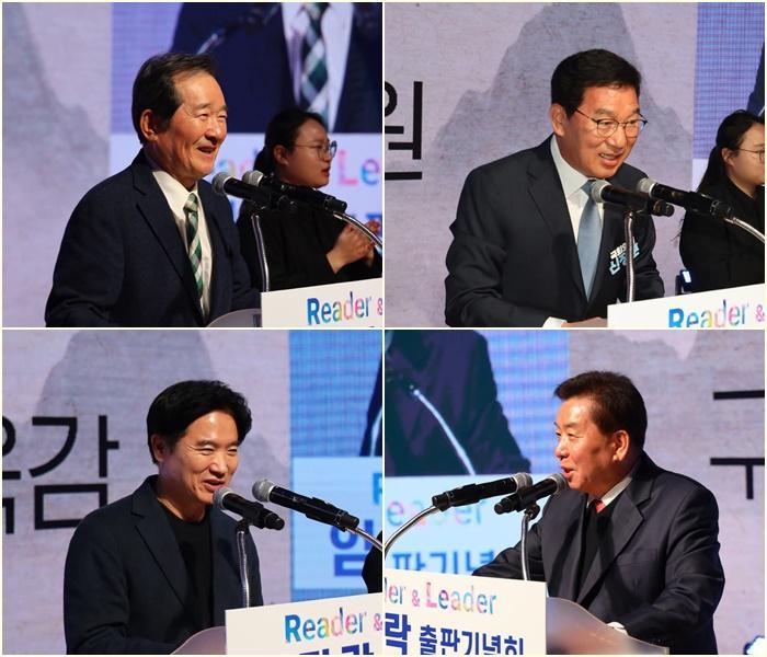 ![]() 정세균 전 국무총리, 신정훈 국회 행안위원장, 구충곤 전 화순군수, 김대중 전남도교유감(위쪽부터 시계방향 순)이 축사를 하고 있다. |